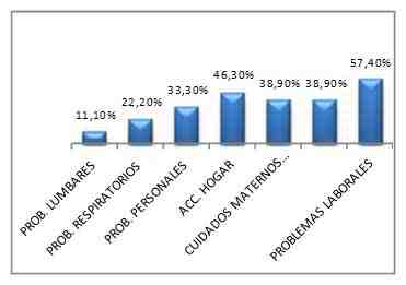 Así mismo, en el análisis de los accidentes que sufrió el personal de Enfermería predomina los ocurridos en el hogar, comparativamente con otros estudios el comportamiento es similar ya que Donatro (1995) citado por D’ Ottone. Estima que el ausentismo por enfermedad o accidente representan las tres cuartas partes del total del personal; así mismo las causas sociales se encuentran entre las no justificadas con un 37%; y las justificadas las licencias médicas, problemas lumbares y cuidados maternos, entre las más frecuentes Constantino, menciona que desde el punto de vista social, la ausencia del personal está presente.