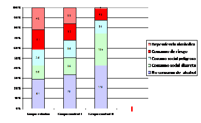 de los mismos en el grupo estudio fundamentalmente en el consumidor de riesgo (19.5%) y la dependencia alcohólica. (21.9)