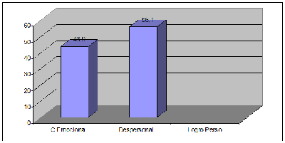 Desglosando la clasificación de burnout: En el burnout Alto, la falta de logro personal ocupó el mayor porcentaje (92,86%) mientras que el 7,14% presentó agotamiento emocional. En el burnout Mediano más de la mitad de los médicos (53,33%) evaluados tenían cansancio emocional, el 33,33% despersonalización y 13,34%, falta de logro personal. En el burnout Bajo predomina la despersonalización, el agotamiento profesional 43,9% y la despersonalización 56,1%..Más de la mitad (53,33%) de los médicos evaluados tenían cansancio emocional