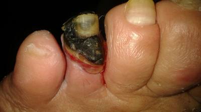 Imagen número 1: necrosis isquémica pie izquierdo, aguda