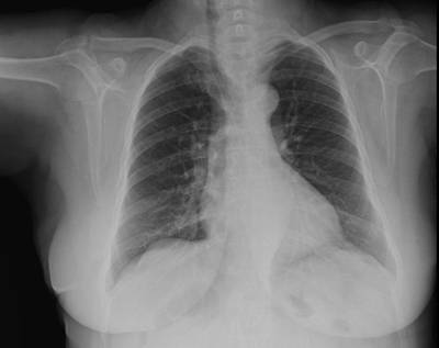 Figura 2. En la radiografía simple de tórax se observa la desviación traqueal a la derecha.