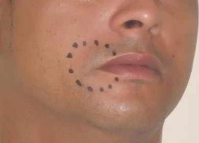 Fig. No 1. Área con trastorno de la sensibilidad delimitada por línea discontinua