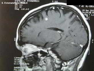 Fig. No 2. Vista de RMN donde se constatan áreas de desmielinización en la sustancia blanca