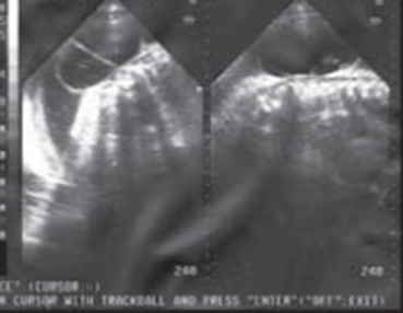 - b) Formación sacular líquida o mixta de diferente tamaño (Fotografías 3).