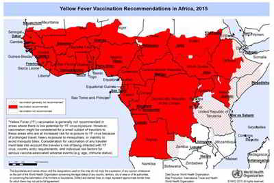 Imagen n 1: Mapa de zonas de afectación de la fiebre Amarilla en África. Fuente: OMS