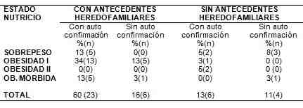 Este estudio hace evidente la importancia de valorar el estado nutricio del paciente adulto, así como su glucosa capilar casual, aunque este no reporte antecedentes heredofamiliares de diabetes mellitus tipo 2 (DM2), ya que el riesgo de desarrollar intolerancia a la glucosa es mayor en pacientes con alteraciones nutricionales, reportes similares a los que hacen Pavez Correa y cols. (15) Araque Lilibeth y cols. (16)